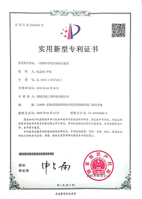 一種鍋爐管壁修理堵管裝置