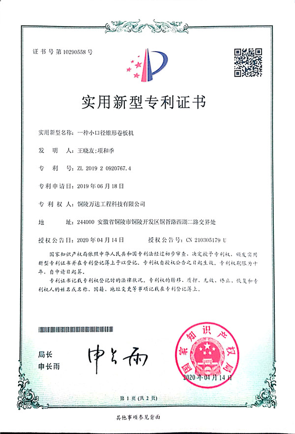 一種小口徑錐形卷板機(jī)
